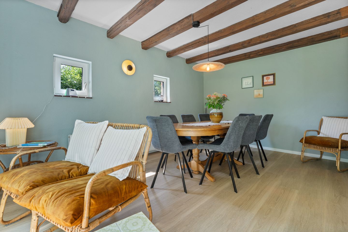 Ein Essbereich im Freien lädt zum Frühstück im Grünen oder zum Grillabend mit Familie und Freunden ein.