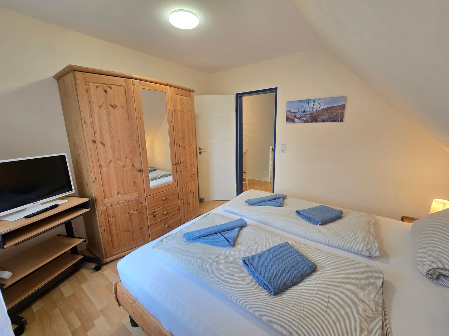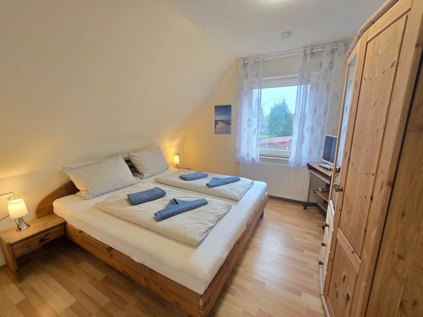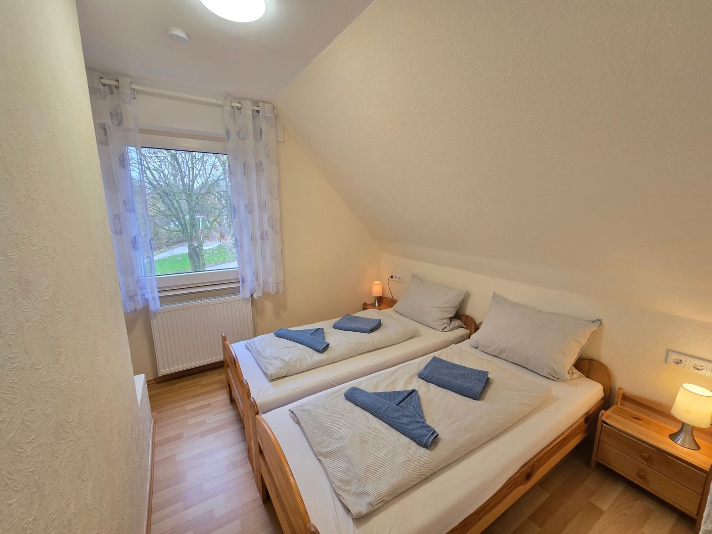 Im Obergeschoss befinden sich zwei komfortable Schlafzimmer, ideal für bis zu vier Personen, sowie ein Badezimmer mit Dusche. Unser Ferienhaus ist besonders familien- und hundefreundlich, sodass auch Ihre vierbeinigen Begleiter herzlich willkommen sind.