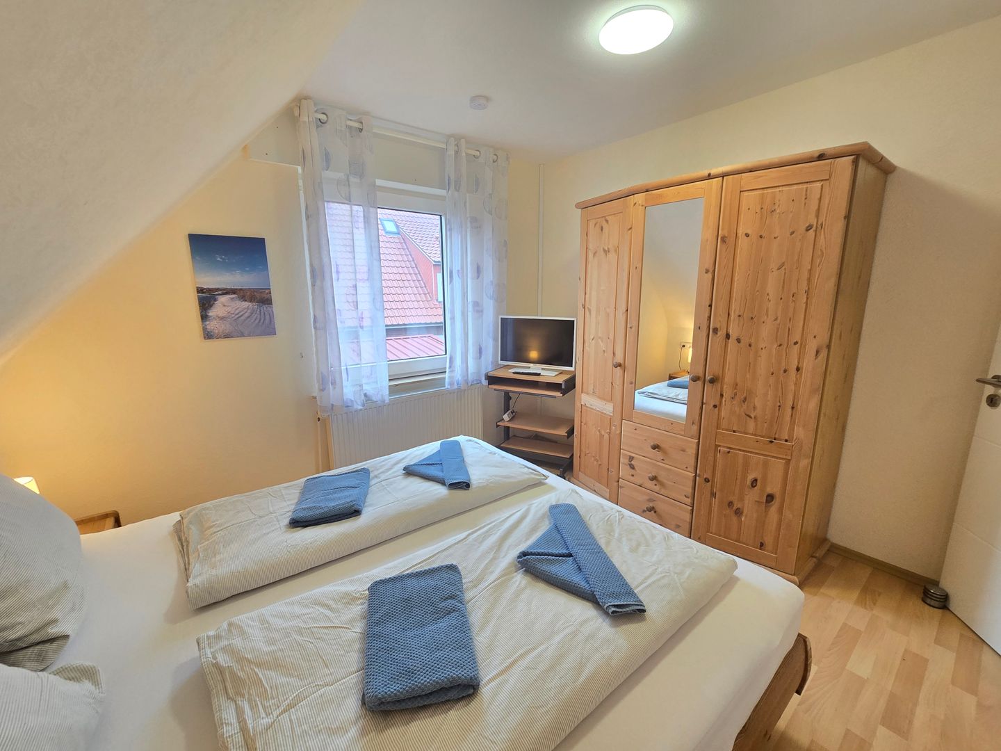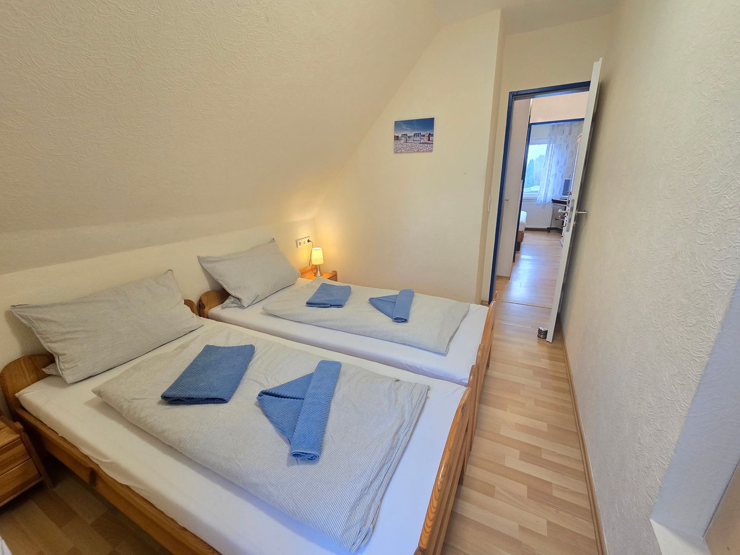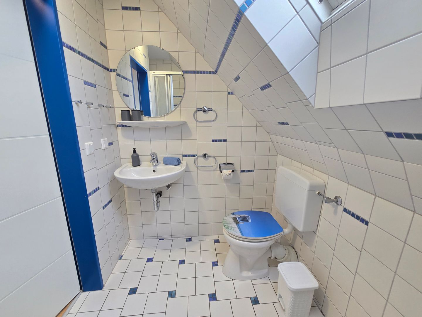 Im Obergeschoss befinden sich zwei komfortable Schlafzimmer, ideal für bis zu vier Personen, sowie ein Badezimmer mit Dusche. Unser Ferienhaus ist besonders familien- und hundefreundlich, sodass auch Ihre vierbeinigen Begleiter herzlich willkommen sind.