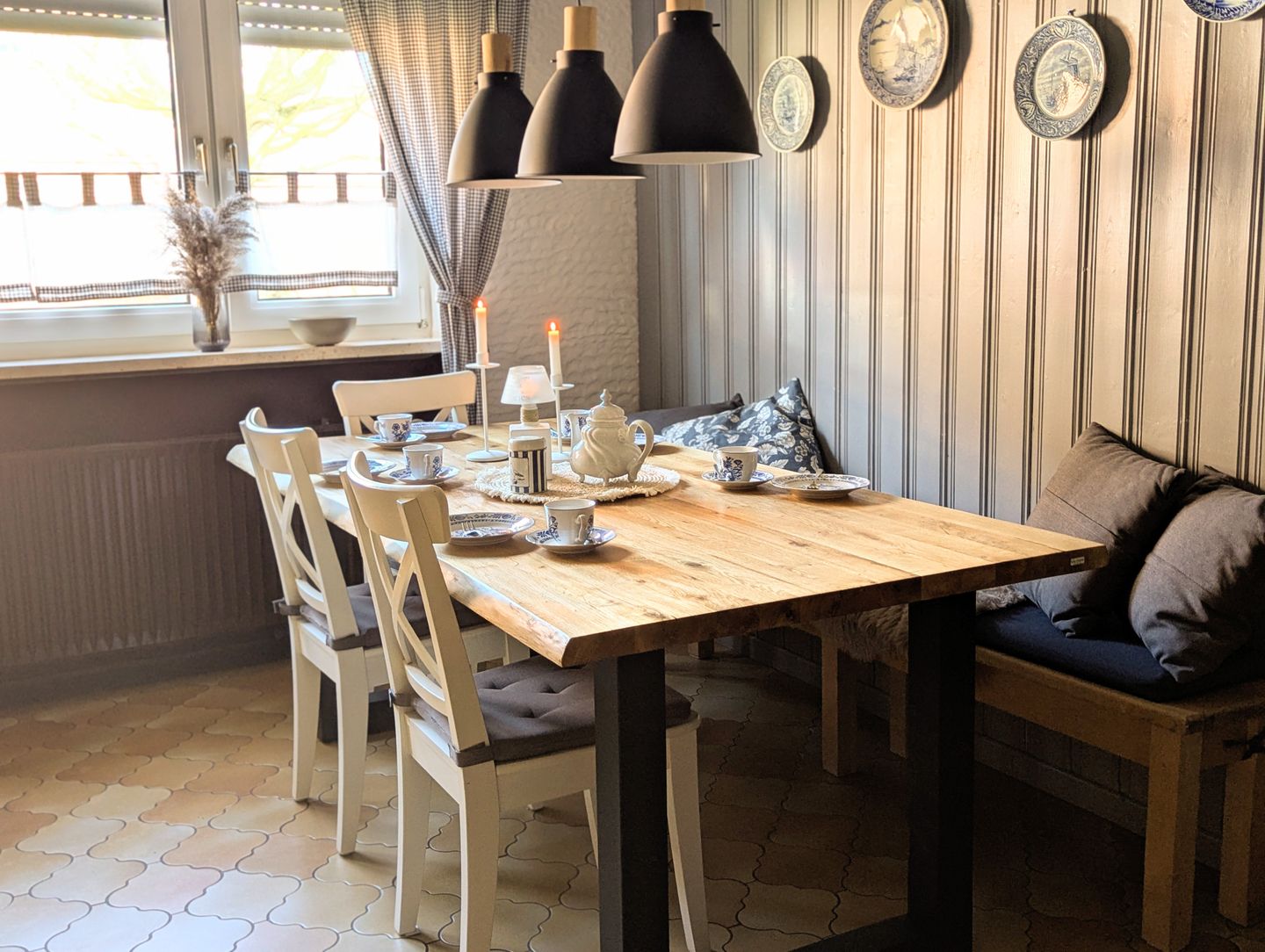 Die große Wohnküche bildet das Herzstück der Wohnung. Hier wird gern gemeinsam gekocht, gespielt oder geklönt. Der offene und einladende Raum schafft eine angenehme Atmosphäre für gesellige Momente. Bettwäsche und Handtücher können gegen Aufpreis hinzugebucht werden.