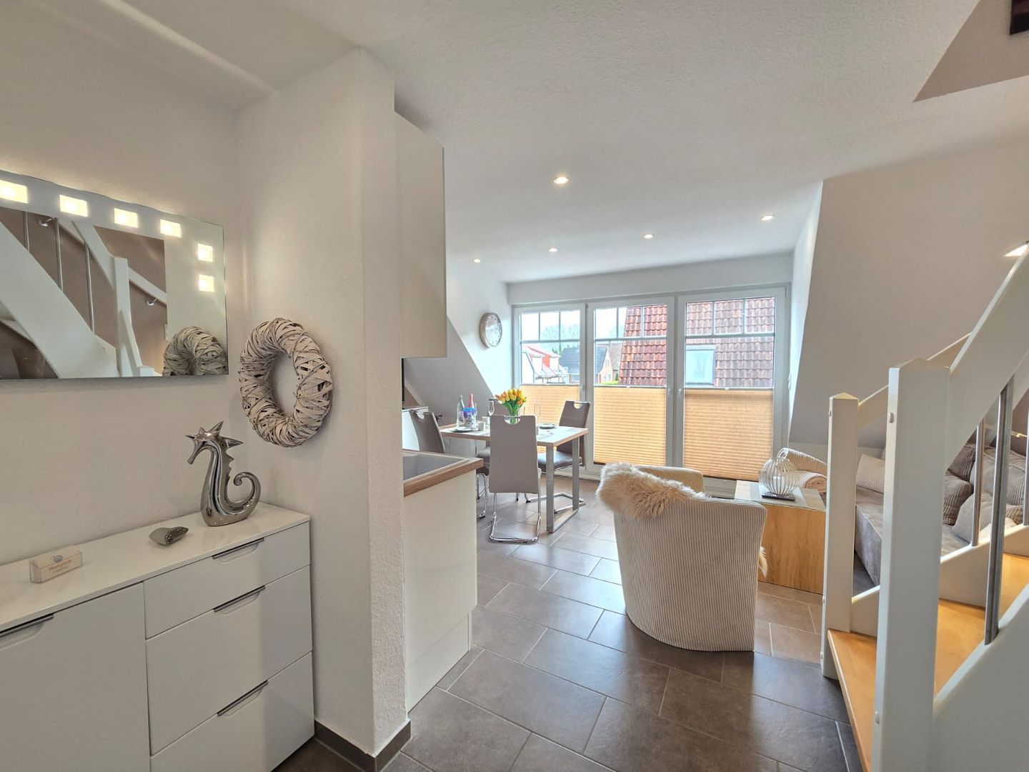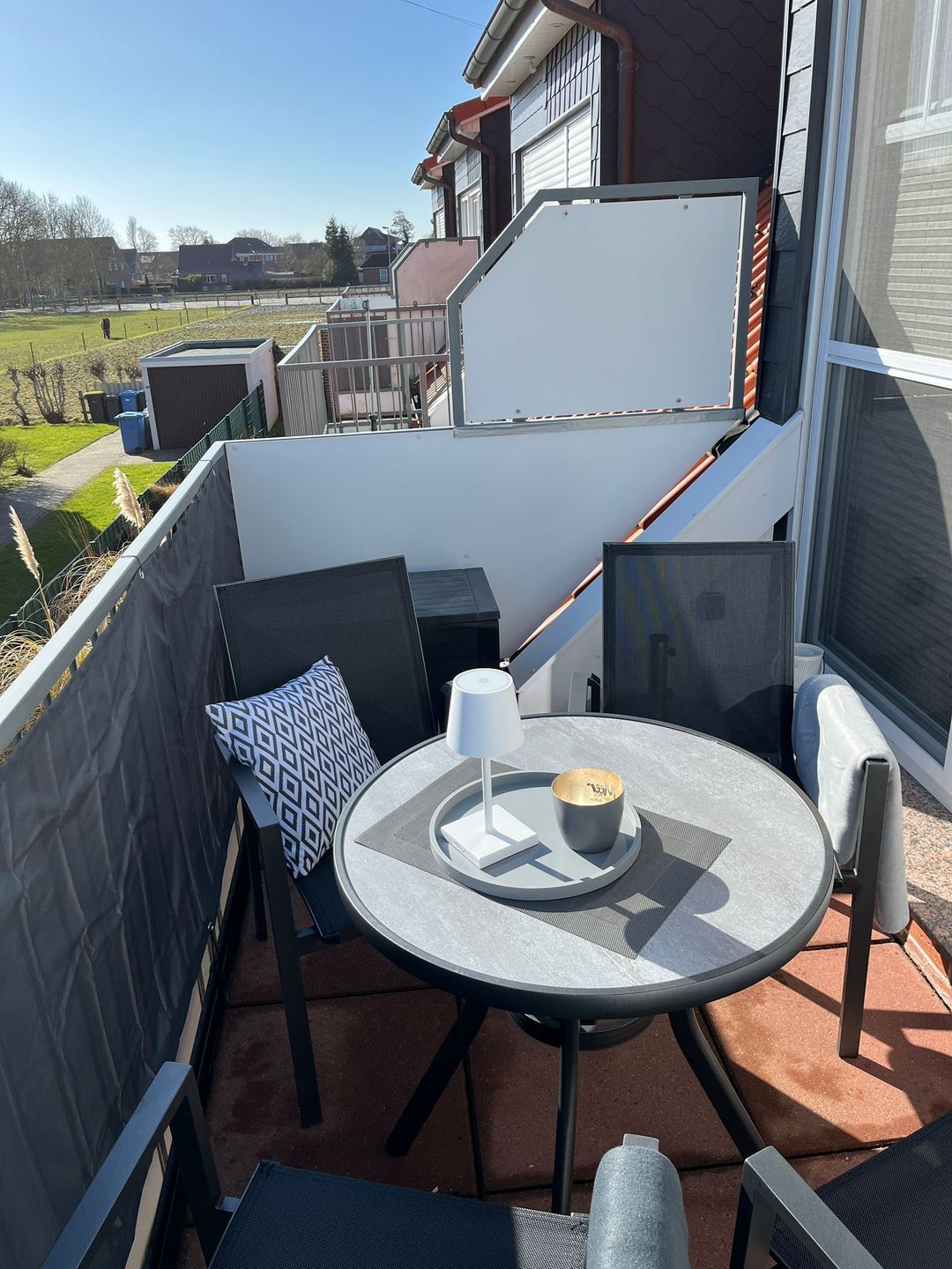 Der schön große Balkon lädt zum Verweilen ein: morgens ein gemütliches Frühstück an der frischen Luft, abends ein Glas Wein und entspannte Stunden – genau so fühlt sich Nordseeurlaub an.