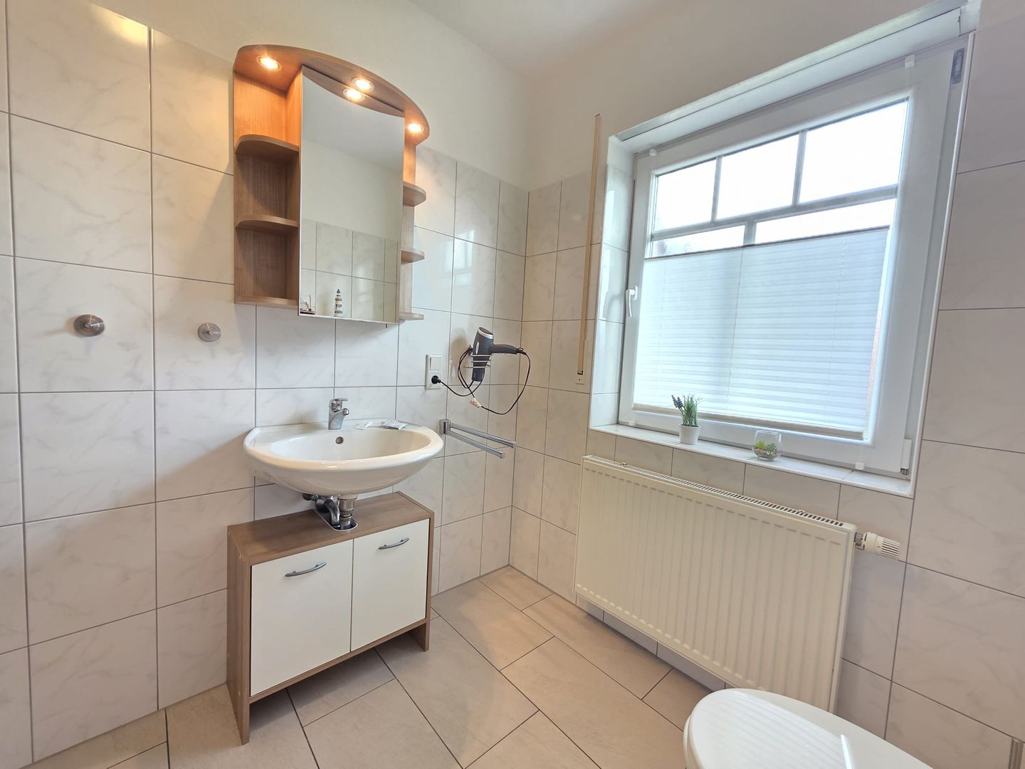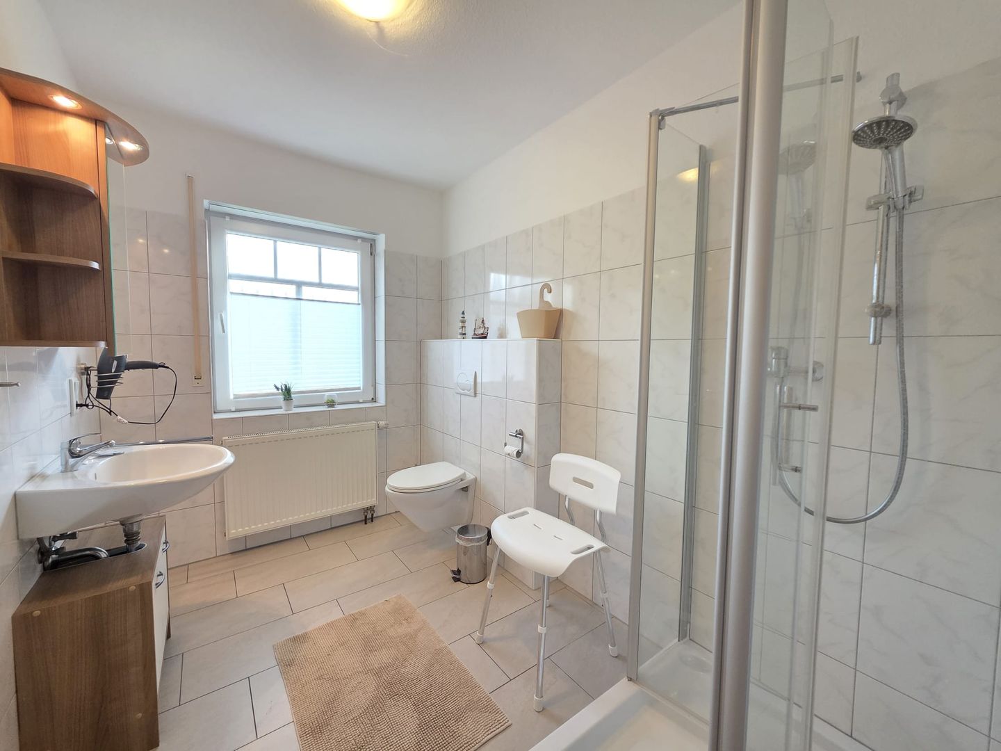 Das moderne Tageslichtbad verfügt über Dusche und WC. Kostenloses WLAN sorgt auch im Urlaub für eine stabile Internetverbindung.
