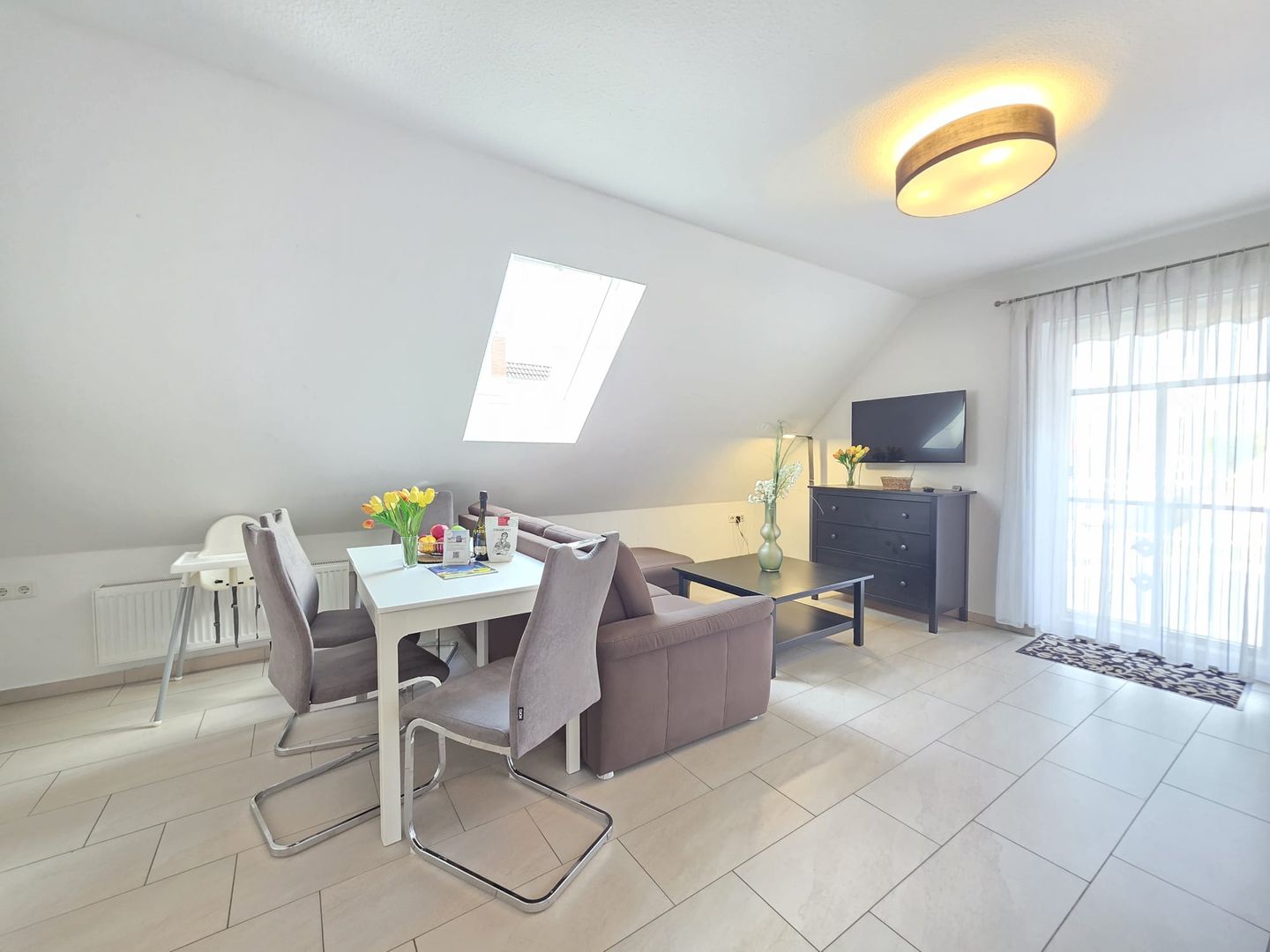 Die gemütlich eingerichtete Wohnung im Obergeschoss zur Sonnenseite bietet Ihnen alles für einen erholsamen Nordseeurlaub – ob mit Partner, Familie oder Freunden.