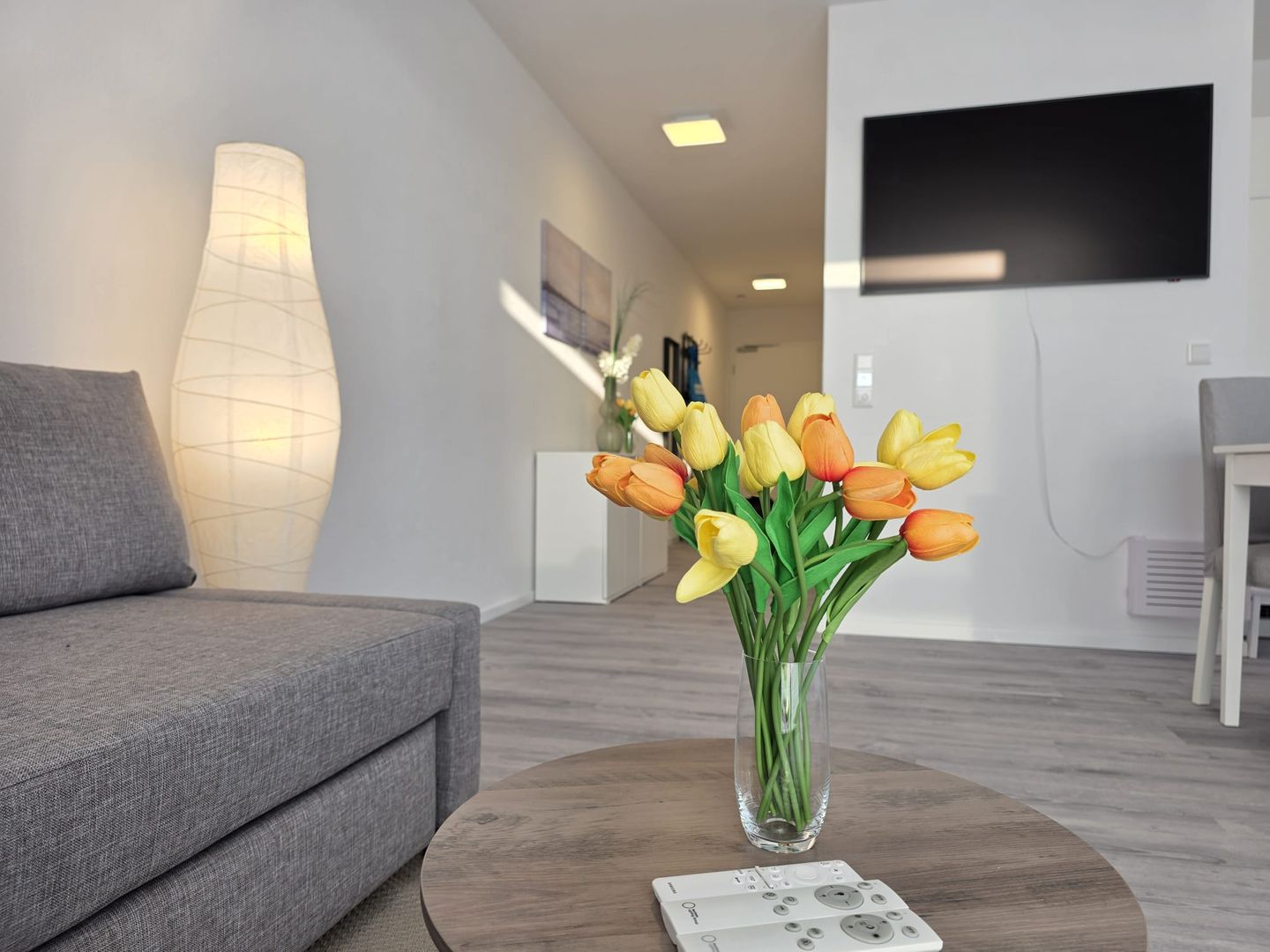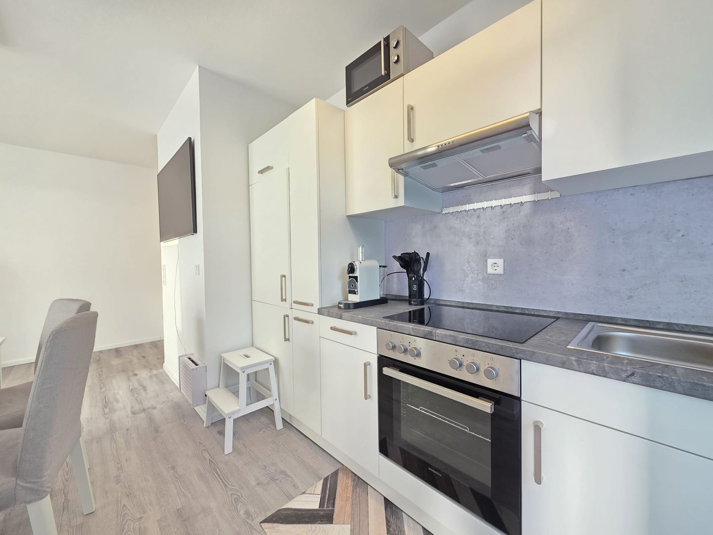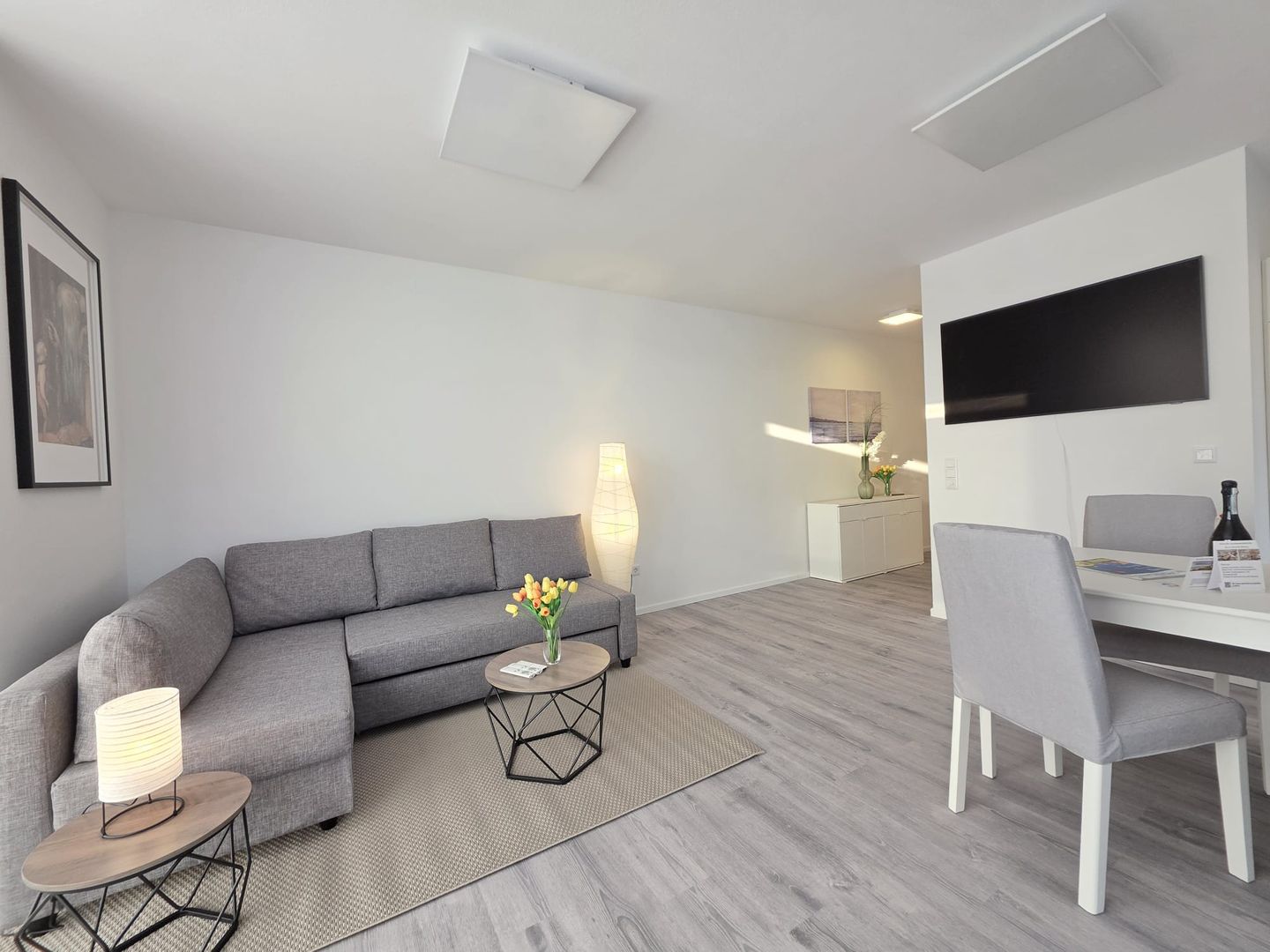 Der helle und freundliche Wohnbereich lädt zum Entspannen ein. Eine große Sofalandschaft bietet viel Platz zum Relaxen und kann bei Bedarf zu einer zusätzlichen Schlafmöglichkeit umgebaut werden. Ein Esstisch verbindet den Wohnbereich mit der offenen Küche, die modern ausgestattet und auf dem neuesten Stand ist. Hier finden Sie alles, was Sie für einen komfortablen Aufenthalt benötigen.