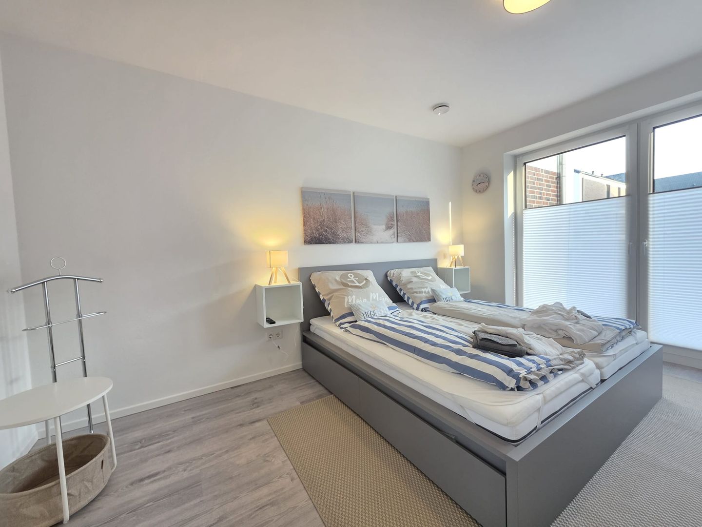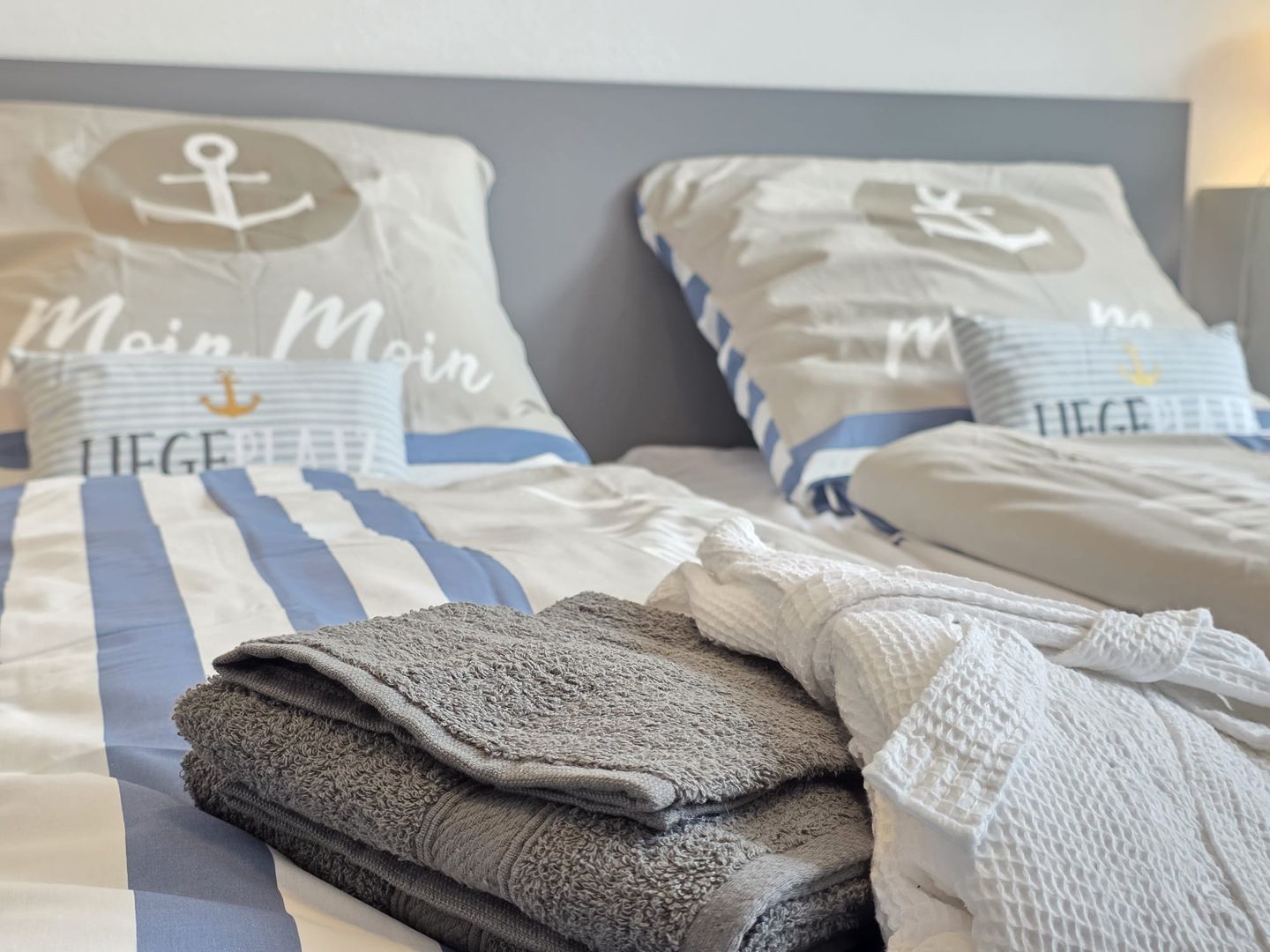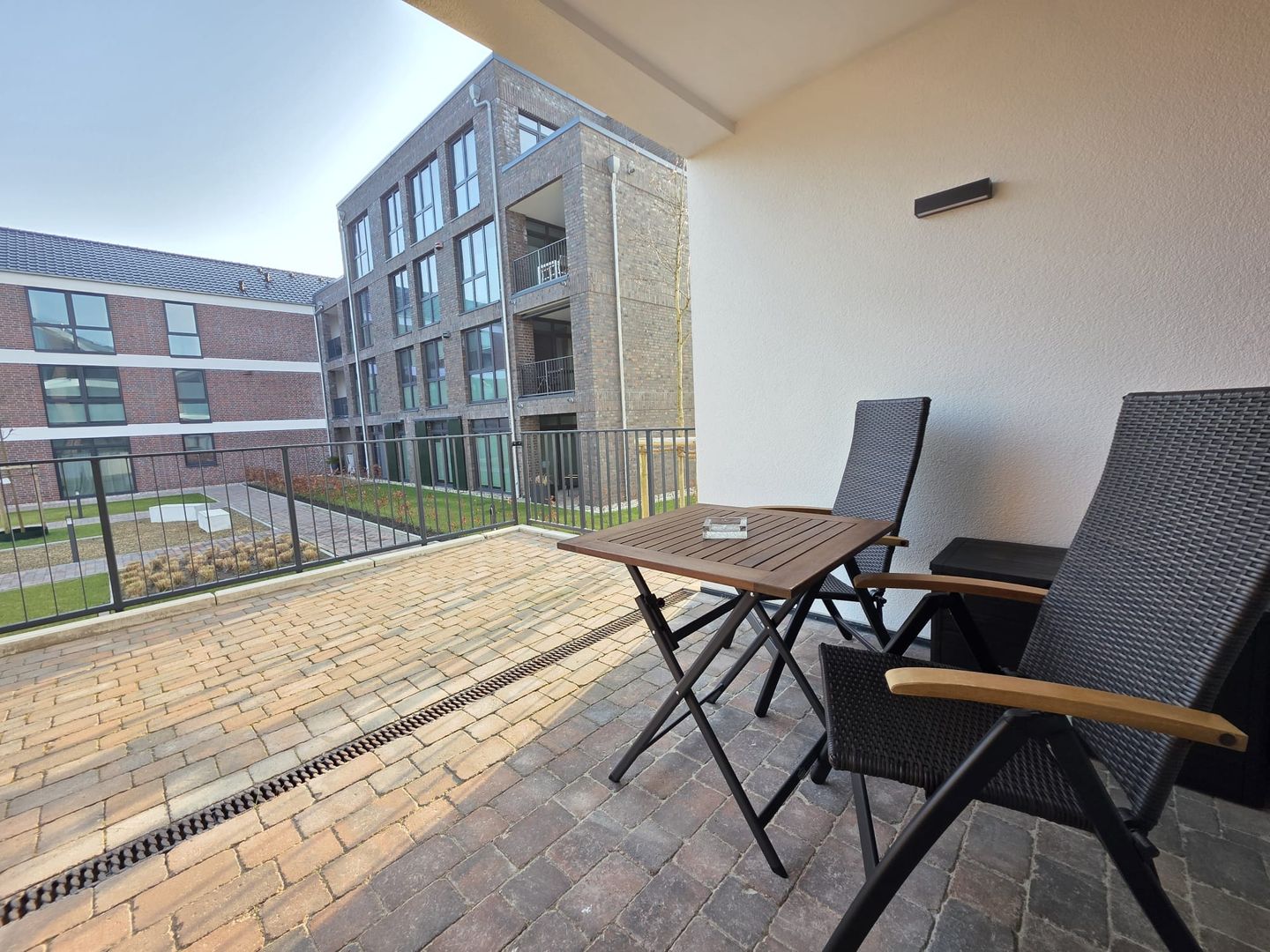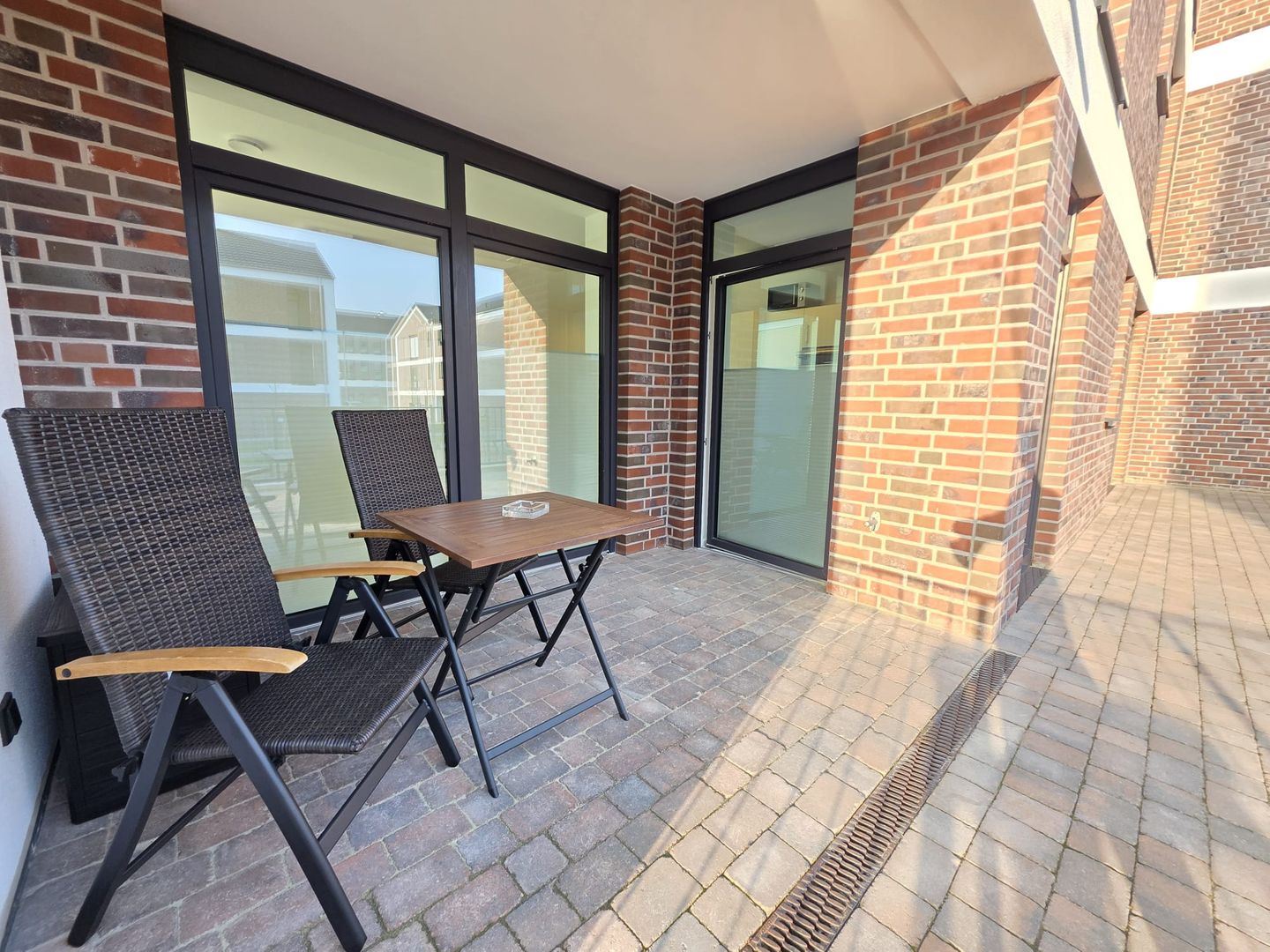 Ein besonderes Highlight ist die große Terrasse, die zu den schönsten Plätzen der Wohnung gehört. Ob beim Frühstück an der frischen Nordseeluft oder beim gemütlichen Abend – hier können Sie Ihren Urlaub in vollen Zügen genießen. Die Terrasse bietet ausreichend Platz für leichte Yoga- oder Stretchingübungen; eine Yoga-/Fitnessmatte ist bereits in der Wohnung vorhanden.